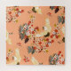 CRANES AND COLOR SAKURA.Colourful floral seamless pattern with flowers, japanese bird. Vintage traditional folk fashion ornament on Cantaloupe colour background. - Vintage.
