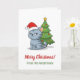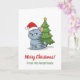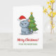Cranky Grey Tabby Cat Red Hat Christmas Tree Card