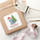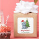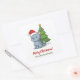 Cranky Grey Tabby Cat Red Hat Christmas Tree Square Sticker