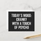 "Today's mood: Cranky with a touch of psycho" funny quote.