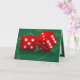 * Red Dice with Las Vegas text on them, set upon a craps table background.