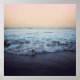 Dreamy photograph of waves crashing on beach.