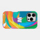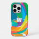 Big arcs of colour reach up and crash over each other in this beautiful abstract art design. Aqua, yellow, orange, green and blue mix in harmonious and brilliant splashes of colour. Add your initial for a customisable monogram design.