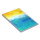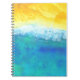 A lively energetic acrylic seascape painting with blue green waters and crashing white waves with a bold and vibrant swirling yellow sky.