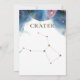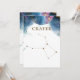 Enjoy a celestial constellation theme with our constellation table signs! Collection with 15 different constellations to choose from, but if you need more, please feel free to add a different constellation name to any of our table number cards (even though card would not have the correct star formation on the bottom, it will allow you to complete your set). Crater table number sign with exquisite watercolor stains and celestial map globe framing "Capricorn" constellation name in a golden hue. Bellow, "Crater" star formation in golden foil. Watercolor stains and celestial map in a beautiful blend of blue, navy, turquoise, purple, magenta, fuchsia, lilac and golden watercolor hues. Ability to change white "background colour" to any colour you like by selecting "customise further" (please make sure to make changes in both front and back). Guide your guests to their table with our coordinating table seating chart cards or our seating chart sign. Part of our "Mystic Garden Celestial Collection" with a variety of coordinating products available. Visit the entire collection at: https://www.zazzle.com/collections/mystic_garden_celestial_collection-119823869554047930