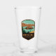 A vintage travel badge design of Crater Lake National Park, a crater lake with Wizard Island and Phantom Ship in Klamath County, Oregon United States.