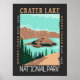 Crater Lake vector artwork design. The park is in the Cascade Mountains of southern Oregon. It’s known for its namesake Crater Lake, formed by the now-collapsed volcano, Mount Mazama.