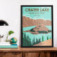 Crater Lake vector artwork design. The park is in the Cascade Mountains of southern Oregon. It’s known for its namesake Crater Lake, formed by the now-collapsed volcano, Mount Mazama.