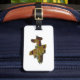 I was happy with the acrylic tag but it came with a thin leather strap to attach the tag to luggage (like a cat collar). I replaced the strap with a metal ring off of a key ring as the leather strap would come undone or break easily as luggage is sometimes handled without much care by airlines. Printing is great. Colours and positioning of the design I put on the tag were perfect. Very pleased.