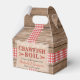 This rustic style design features a wood background with red and white ribbon. On top of that is a burlap texture with red and black serif and handwritten script font which is all customisable to your event, whether it is a crawfish boil, lobster, seafood, or fish boil. Celebrate your engagement, birthday, graduation, or any event in style with this favour box design!