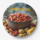 Paper party plates with image of crawfish cooking with potatoes and corn for a summer crawfish boil.