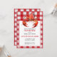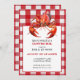 Beautiful Summer Seafood Crawfish Boil Party Invitation with Large Red Crayfish and Rustic Red and White Picnic Table Cloth. Customise with your party's details.