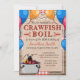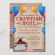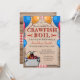 This rustic style design features a wood background with red and white ribbon. On top of that is a burlap texture with red and black serif and script font which is all customisable to your event, whether it is a crawfish boil, lobster, seafood, or fish boil. Celebrate this birthday in style with this invitation!