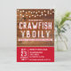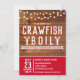 This rustic red brown design features a rustic wood background with string lights and crawfish graphics. This invitation is great for engagement parties, but the text can also be customised for birthdays, weddings, family reunions, and any other party you may have a crawfish, crayfish, crab, or lobster boil at. Enjoy your crawfish and seafood boil!