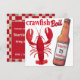 Customize the front and the reverse of this Crawfish Boil party invitation featuring a large red crawfish and bottle of beer.