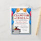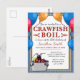 This blue and gold crawfish boil invitation is customisable to your special event. Featuring a teal background with gold pearls and crawfish, this design is perfect for your birthday, engagement party, graduation, or any event you maybe be hosting. The cartoon illustrated crawfish along with balloons on the front add an extra fun flair to the serif and handwritten script fonts. The word "crawfish" is also customisable to whatever "boil" you may be having, including seafood, lobster, crab, etc.