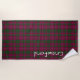 Stylish beach towel done in the classic green and orchid Scottish clan Crawford tartan plaid pattern. Personalise the large white text to suit your needs.