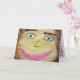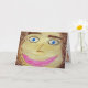 Child's sketch of a funny face with big eyes, pink lips and curly hair for humourous birthday