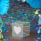 You could say life is like a box of crayons.  This art shows that you never know what you are going to get when you decide to use every colour imaginable.  The colours are randomly mixed together, so even though every colour under the rainbow might be there, it doesn't look like a rainbow, but a playful and amazingly beautiful optical illusion of colours swirling together in the centre of this sticker.  Great for art themed parties and colourful personalities.