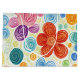 Bright and colourful crayon swirls and floral doodles fill the design creating a playful and whimsical atmosphere