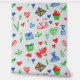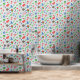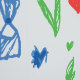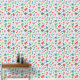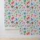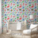 This is a great wallpaper for kids' rooms. It is a crayon-style design with shapes of hearts, plants, and kites.
