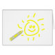 Simple childlike crayon style line drawing of a yellow sun with a happy smiling face. Image available on various gifts and products. Customise and choose your own background colour or add text if you need to.