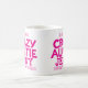 Bold bright pink Crazy Auntie text slogan mug. Reads Oh yes, I am the Crazy Auntie Jenny everyone warned you about. Or Personalise with your own name. Text design by Sarah Trett for www.mylittleeden.com on zazzle.
