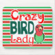 A cute drawing of a peach-faced lovebird with text: "Crazy Bird Lady" in unique fun fonts. Perfect gift ideas for bird lovers, parronts, especially bird mommies who called themselves crazy bird ladies. Available as t-shirts, mugs, bags and many other merchandises. :)
