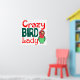 A cute drawing of a peach-faced lovebird with text: "Crazy Bird Lady" in unique fun fonts. Perfect gift ideas for bird lovers, parronts, especially bird mommies who called themselves crazy bird ladies. Available as t-shirts, mugs, bags and many other merchandises. :)