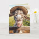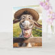 A donkey with a comical exaggerated smile stands behind a wooden fence, wearing a straw hat for getting older birthday.