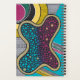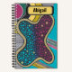 You can use this notebook at home, in the office or at school, and it can be personalised with your name. It is decorated with a pen and ink abstract, resembling an amoeba, with flowing curves and circles, in shades of hot pink and turquois blue, and contrasting background stripes. It's querky, bright and cheerful. The artwork is original, and only available from The Art of Being Beth.