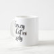 Fun cat mug. In black lettering are the words Crazy Cat Lady. Either side of the lettering is a little grey and white cat head, with dots for eyes and pink ears.