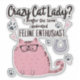A humorous and vibrant design showcases a chubby pink cat with black stripes, surrounded by playful paw prints. The black handwritten text humorously states: "Crazy cat lady? I prefer the term dedicated feline enthusiast." This fun design is available on a variety of products, making it a fantastic gift for cat lovers.