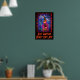 Dress up your home this Halloween with this fun colourful poster. Put it on your front door to welcome party guests or trick or treaters! A cute sassy red headed witch holds her black cat on a mysterious Halloween night, three mischievous crows caw in the dead trees, while two ghosts and lots of bats fly through the spooky sky! Change the text if you want to!