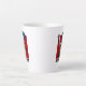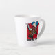 A crazy clown latte mug memento for your Halloween party guests. Use "Personalise this template" to tweak the "HALLOWEEN 2025" text and make a unique, customised gift; text changes are reflected on both sides. A gift to take away from the Halloween party, featuring a colourful, manic clown wielding an orange chainsaw; with wild blue hair and wearing a ruff, massive clown shoes and stripy leggings and sleeves.