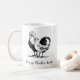 Funny mug for chicken lovers with vintage chicken and rooster illustration and custom script "crazy chicken lady" in decorative font