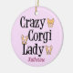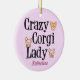 A cute pink Pembroke Welsh Corgi Christmas ornament gift that features pretty corgi puppies next to the words Crazy Corgi Lady for a woman who loves her dog.