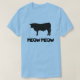 This light blue mens t-shirt is called crazy cow. The t-shirt shows a silhouette of a cow with the writing meow meow written below it in black ink. This humerous design is ideal for anyone looking for a unique and funny design or someone looking for a strange animal combination