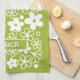 Crazy Daisy Pattern in Spring Green with Name Tea Towel