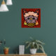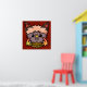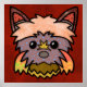 Unique crazy dog face with bold, colourful abstract patterns on a red background. Popular with dog lovers and pet lovers and rescue dog lovers.