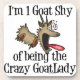 Our famous 1 Goat Shy of Being the Crazy Goat Lady - you won't find this goat shirt or gift anywhere else. GetYerGoat Exclusive.