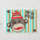 Crazy Hat Monkey You're Invited Postcard. Original Art Created/Copyright BY Julie W Farrell 2010. a cute postcardcard for any occasion. Check out my store for more coordinating Sock Monkey Inites, stickers and more!