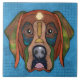 Unique crazy dog Labrador Retriever face with bold, colourful abstract patterns on a blue background. Popular with dog lovers and pet lovers and rescue dog lovers.