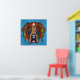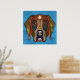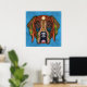 Unique Labrador Retriever crazy dog face with bold, colourful abstract patterns on a blue background. Popular with dog lovers and pet lovers and rescue dog lovers.
