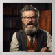 Crazy mad professor with beard poster