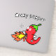 Crazy Pepper Funny Red Chilli Hot Vegetables Sticker | Hand drawn chilli hot vegetables. Isolated funny cartoon character vector illustration. Organic vegetable. Healthy vegetarian lunch. Cooking food. You can change the text