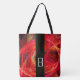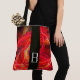 CRAZY PHOTON BLACK STRIPE MONOGRAM Red Fractals Tote Bag