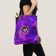 CRAZY PHOTON GEM MONOGRAM Purple Blue Fractals Tote Bag