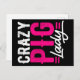 Crazy Pig | Lady Farming | Retro Gift Announcement Postcard