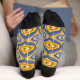 Crazy psychedelic socks with weird eye pattern indigo blue and honeycomb yellow colours. This fun eclectic quirky pattern resembles retro modern mid-century style due to its geometric shapes.